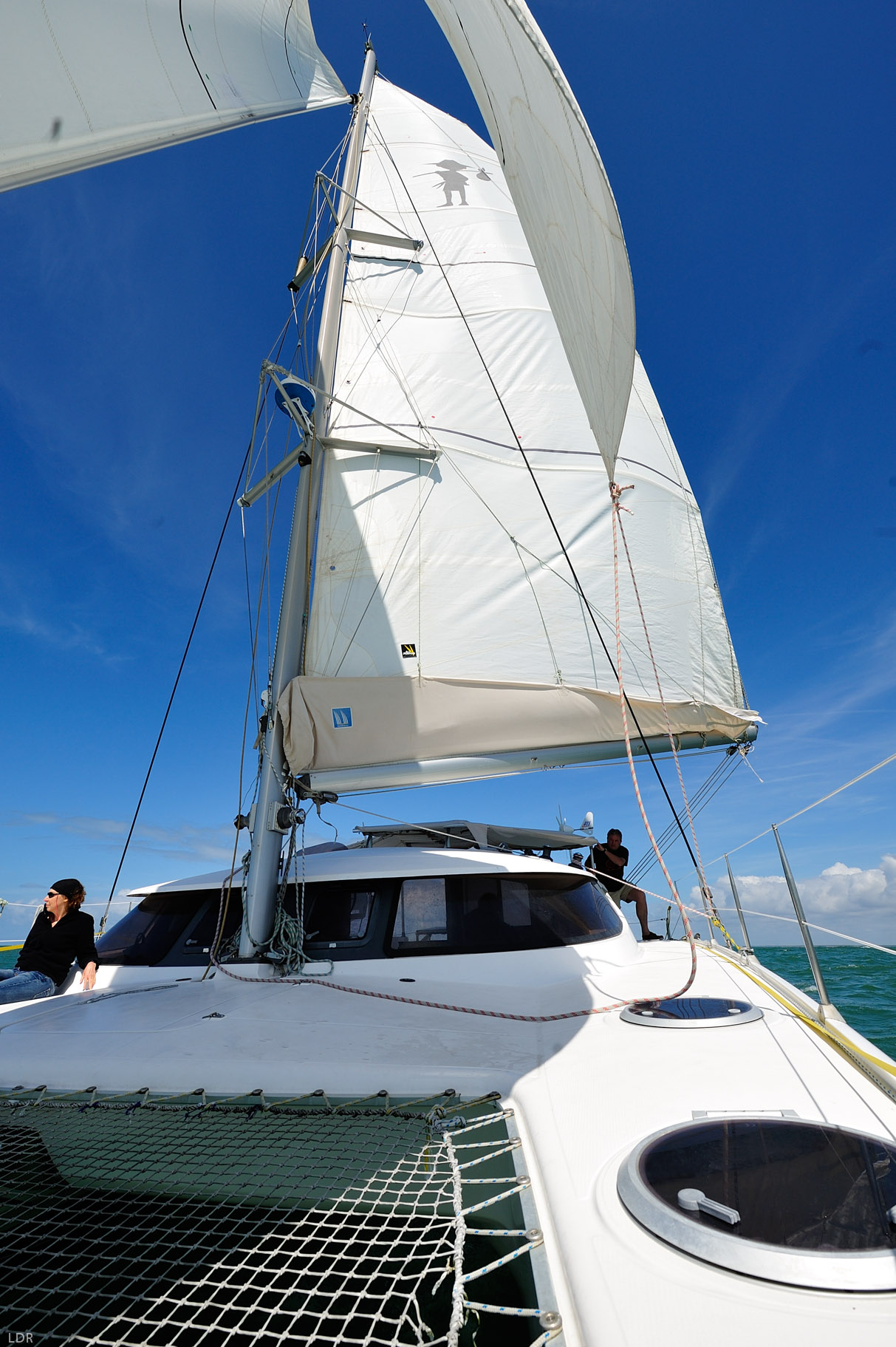 l'eau passant entre les deux coques, la vue est celle que l'on a dans les toilettes.